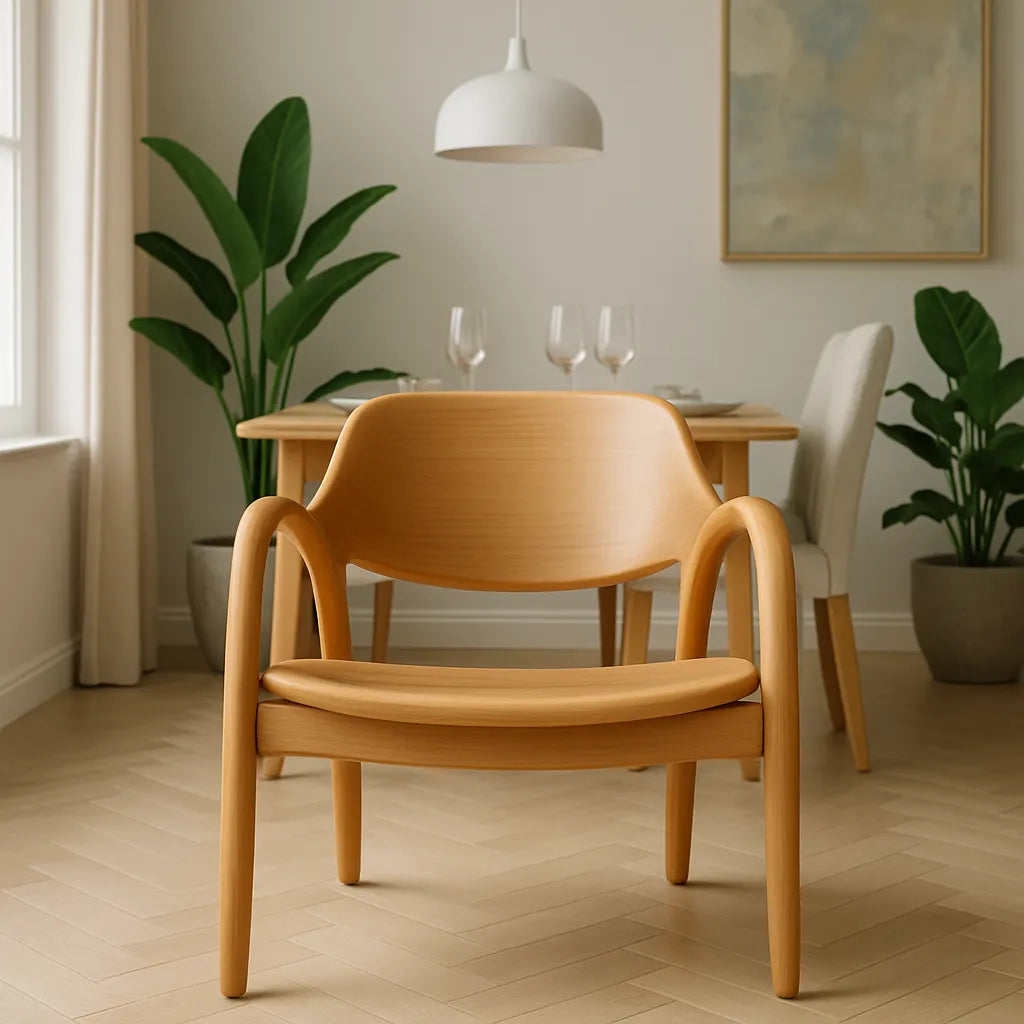 Relaxation takes new form with this lounge chair shaped with a low profile, curved armrest and contoured back. The design supports a comfortable posture while offering visual balance in a room. A smooth surface and soft tone allow the chair to sit naturally in a calm, uncluttered setting. A wide seat offers space for rest, reading or quiet time, fitting into a living room, bedroom or study corner. Light in weight yet steady in form, the chair can be repositioned with ease. More than a seat, this piece introduces a sculptural presence that supports both function and quiet atmosphere. Styled alone or in a pair, it adjusts to the mood of the space with understated form.